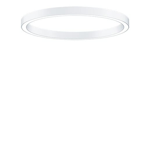 Luminaire apparent à LED en forme d’anneau à éclairage direct, avec un boîtier profilé fin en aluminium, de couleur blanc, avec une optique Technologie MicroPrisme, Puissance du luminaire: 69,2 W, Luminaire pilotable via DALI avec convertisseur à LED ; durée de vie des LED de 50000 h jusqu’à une diminution du flux lumineux de 90 % de la valeur initiale. Tolérance de la couleur (MacAdam intial): 3. Flux lumineux du luminaire: 6352 lm, Efficacité lumineuse du luminaire: 92 lm/W. Rendu des couleurs Ra > 90, température de couleur 4000 K. Guidage de la lumière par le biais d’une optique à structure micropyramidale multicouche pour une sortie définie du flux avec UGR < 19 et L < 3000 cd/m² à 65° pour les applications avec écra. Boîtier profilé en aluminium laminé et extrudé, soudure sans raccords, blanc thermopoudré pour une finition de surface haut de gamme ; fourniture des accessoires nécessaires à un montage au plafond ou au mur. Câblage du luminaire sans halogène. Test du filament incandescent : 650°C ; Luminaire à filerie exempte d'halogène et sans silicone ; Dimensions : Ø1200 x 85 mm, poids : 9 kg.
