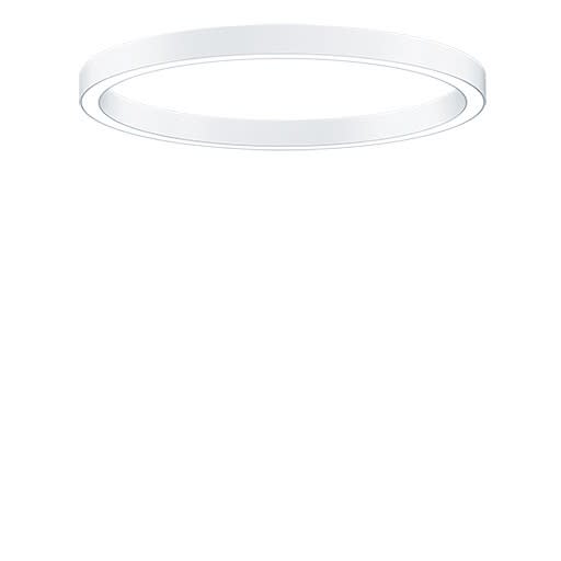 Luminaire apparent à LED en forme d’anneau à éclairage direct, avec un boîtier profilé fin en aluminium, de couleur blanc, avec une optique Opale, Puissance du luminaire: 69,5 W, Luminaire pilotable via DALI avec convertisseur à LED ; durée de vie des LED de 50000 h jusqu’à une diminution du flux lumineux de 90 % de la valeur initiale. Tolérance de la couleur (MacAdam intial): 3. Flux lumineux du luminaire: 6448 lm, Efficacité lumineuse du luminaire: 93 lm/W. Rendu des couleurs Ra > 90, température de couleur 4000 K. Guidage de la lumière par le biais d’une optique à structure opale multicouche pour la sortie définie du flux avec UGR < 22. Boîtier profilé en aluminium laminé et extrudé, soudure sans raccords, blanc thermopoudré pour une finition de surface haut de gamme ; fourniture des accessoires nécessaires à un montage au plafond ou au mur. Câblage du luminaire sans halogène. Test du filament incandescent : 650°C ; Luminaire à filerie exempte d'halogène et sans silicone ; Dimensions : Ø1200 x 85 mm, poids : 9 kg.
