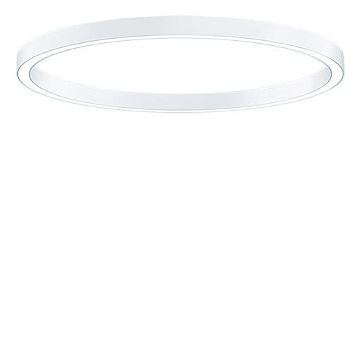 Luminaire apparent à LED en forme d’anneau à éclairage direct, avec un boîtier profilé fin en aluminium, de couleur blanc, avec une optique Technologie MicroPrisme, Puissance du luminaire: 92,8 W, Luminaire pilotable via DALI avec convertisseur à LED ; durée de vie des LED de 50000 h jusqu’à une diminution du flux lumineux de 90 % de la valeur initiale. Tolérance de la couleur (MacAdam intial): 3. Flux lumineux du luminaire: 8253 lm, Efficacité lumineuse du luminaire: 89 lm/W. Rendu des couleurs Ra > 90, température de couleur 4000 K. Guidage de la lumière par le biais d’une optique à structure micropyramidale multicouche pour une sortie définie du flux avec UGR < 19 et L < 3000 cd/m² à 65° pour les applications avec écra. Boîtier profilé en aluminium laminé et extrudé, soudure sans raccords, blanc thermopoudré pour une finition de surface haut de gamme ; fourniture des accessoires nécessaires à un montage au plafond ou au mur. Câblage du luminaire sans halogène. Test du filament incandescent : 650°C ; Luminaire à filerie exempte d'halogène et sans silicone ; Dimensions : Ø1500 x 85 mm, poids : 11 kg.