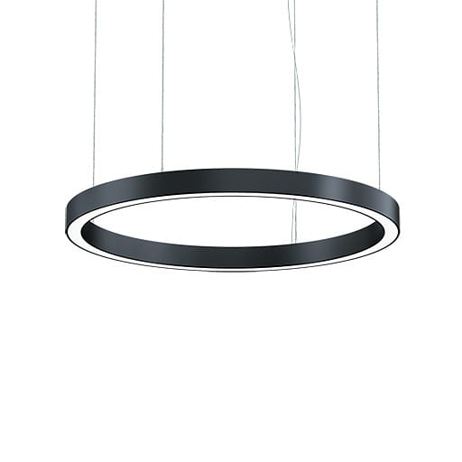 Luminaire suspendu à LED en forme d’anneau à éclairage direct/indirect, avec un boîtier profilé fin en aluminium, de couleur noir et avec une optique Technologie MicroPrisme. Puissance du luminaire: 71,2 W, Luminaire pilotable via DALI avec convertisseur à LED ; durée de vie des LED de 50000 h jusqu’à une diminution du flux lumineux de 90 % de la valeur initiale. Tolérance de la couleur (MacAdam intial): 3. Flux lumineux du luminaire: 6800 lm, Efficacité lumineuse du luminaire: 96 lm/W. Rendu des couleurs Ra > 90, température de couleur 3000 K. Guidage de la lumière par le biais d’une optique à structure micropyramidale multicouche pour une sortie définie du flux avec UGR < 19 et L < 3000 cd/m² à 65° pour les applications avec écra. Boîtier profilé en aluminium laminé et extrudé, soudure sans raccords, de couleur noir thermopoudré pour une finition de surface haut de gamme ; câbles de suspension et accessoires de montage fournis, cache-piton de plafond à commander séparément. Câblage du luminaire sans halogène. Longueur du câble de suspension : 3 m. Test du filament incandescent : 650°C ; Luminaire à filerie exempte d'halogène et sans silicone ; Dimensions : Ø1200 x 85 mm, poids : 9 kg.