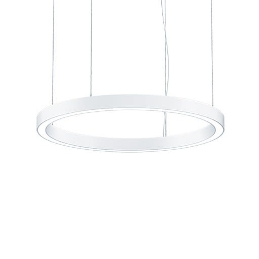 Luminaire suspendu à LED en forme d’anneau à éclairage direct/indirect, avec un boîtier profilé fin en aluminium, de couleur blanc et avec une optique Opale. Puissance du luminaire: 71 W, Luminaire pilotable via DALI avec convertisseur à LED ; durée de vie des LED de 50000 h jusqu’à une diminution du flux lumineux de 90 % de la valeur initiale. Tolérance de la couleur (MacAdam intial): 3. Flux lumineux du luminaire: 7198 lm, Efficacité lumineuse du luminaire: 101 lm/W. Rendu des couleurs Ra > 90, température de couleur 4000 K. Guidage de la lumière par le biais d’une optique à structure opale multicouche pour la sortie définie du flux avec UGR < 22. Boîtier profilé en aluminium laminé et extrudé, soudure sans raccords, de couleur blanc thermopoudré pour une finition de surface haut de gamme ; câbles de suspension et accessoires de montage fournis, cache-piton de plafond à commander séparément. Câblage du luminaire sans halogène. Longueur du câble de suspension : 3 m. Test du filament incandescent : 650°C ; Luminaire à filerie exempte d'halogène et sans silicone ; Dimensions : Ø1200 x 85 mm, poids : 9 kg.