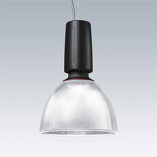 Suspension LED moderne et efficace. Convient pour les installations de secours avec batterie centrale Commande sans fil contrôlée par appli avec Bluetooth® 4.x - basicDIM Wireless Électronique,. Boîtier : aluminium fonderie avec finition noir satiné. Réflecteur : prismatique verre avec fixation au boîtier de type baïonnette. Classe électrique I, IP20. Suspension par câble unique réglable 2,5m (fourni). Pré-câblé avec un câble tressé en silicone ignifuge, 5 P 0,75 mm². Livré avec LED 3 000 KDéfinition radio: basicDIM Wireless - Bluetooth® 4.x, Fréquence radio: 2,4...2,483 GHz, Puissance d'émission radio: + 4dBm.Dimensions : Ø340/140 x 485 mmPuissance du luminaire: 72 WPoids : 6,8 kg