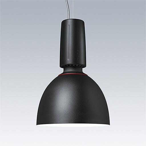 Suspension LED moderne et efficace. Convient pour les installations de secours avec batterie centrale Commande sans fil contrôlée par appli avec Bluetooth® 4.x - basicDIM Wireless Électronique,. Boîtier : aluminium fonderie avec finition noir satiné. Réflecteur : noir aluminium avec fixation au boîtier de type baïonnette. Classe électrique I, IP20. Suspension par câble unique réglable 2,5m (fourni). Pré-câblé avec un câble tressé en silicone ignifuge, 5 P 0,75 mm². Livré avec LED 3 000 KDéfinition radio: basicDIM Wireless - Bluetooth® 4.x, Fréquence radio: 2,4...2,483 GHz, Puissance d'émission radio: + 4dBm.Dimensions : Ø340/140 x 485 mmPuissance du luminaire: 27 WPoids : 4,8 kg