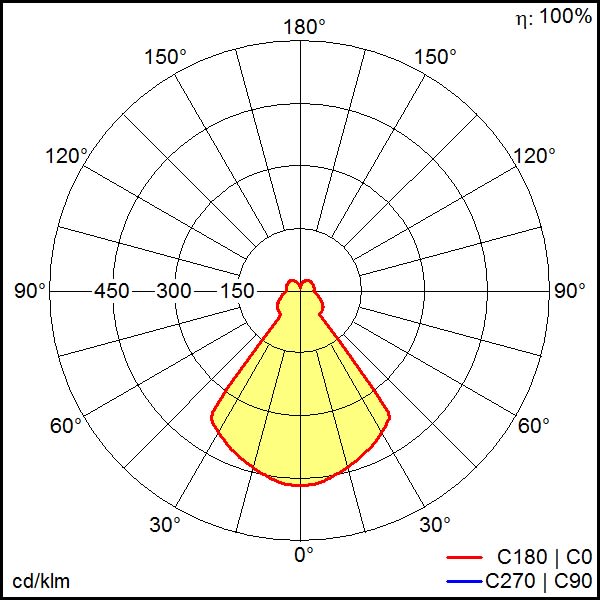 faible éblouissement selon EN 12464-1 (UGR Inf. à 19):