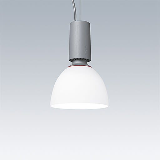 Suspension LED moderne et efficace. Convient pour les installations de secours avec batterie centrale Appareillage gradable DALI. Boîtier : aluminium fonderie avec finition gris satiné. Réflecteur : opale verre avec fixation au boîtier de type baïonnette. Classe électrique I, IP20. Suspension par câble unique réglable 2,5m (fourni). Pré-câblé avec un câble tressé en silicone ignifuge, 5 P 0,75 mm². Livré avec LED 4 000 KDimensions : Ø250/100 x 370 mmPuissance du luminaire: 8,5 WPoids : 2,5 kg