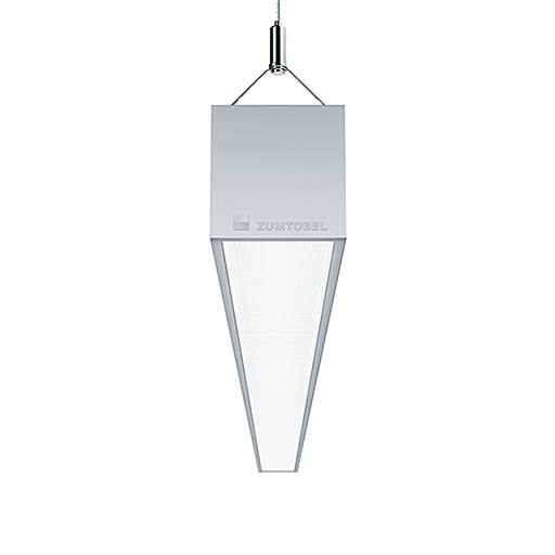 Luminaire suspendu à LED étroit, à composante directe/indirecte, Puissance du luminaire: 40,6 W LED, Luminaire pilotable via DALI avec convertisseur à LED. Durée de vie des LED de 100000 h avec diminution du flux lumineux à 95 % de la valeur initiale. Tolérance de la couleur (MacAdam intial): 3. Flux lumineux du luminaire: 4560 lm, Efficacité lumineuse du luminaire: 112 lm/W. Rendu des couleurs Ra > 80, température de couleur 3000 K. Guidage du flux direct par optique LRO à luminance réduite, rétroéclairée multicouche avec UGR <19. Résolution homogène des points lumineux à LED. Guidage indirect de la lumière par profilé continu pour la résolution homogène des points lumineux au plafond. Système optique fermé avec protection contre les contacts accidentels du module à LED empêchant une dégradation par décharge électrostatique. Corps du luminaire thermopoudré en profilé d'aluminium extrudé à section carrée visible, parties frontales en aluminium injecté à vis masquées, peintes dans la teinte du luminaire anodisé argent. Luminaire avec câble exempt d'halogène avec câble d'alimentation transparent pose. 1 câble de (1 m) avec câble transversal prémonté. Hauteur sous plafond : 4 à 6 m prémonté. Suspension à réglage progressif en hauteur et décalage proressif en longueur. Dimensions : 1209 x 63 x 64 mm. Poids : 3 kg.