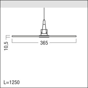 Luminaire suspendu à LED minimaliste à répartition indirecte/directe avec guide de lumière transparent. Puissance du luminaire: 37,2 W, Commande sans fil contrôlée par appli avec Bluetooth® 4.x - basicDIM Wireless avec convertisseur à LED ; durée de vie des LED : après 100000 h, diminution du flux lumineux à 90 % de la valeur initiale. Tolérance de la couleur (MacAdam intial): 3. Avec convertisseur LED numériquement graduable et supportant le courant continu pour commande DALI. Flux lumineux du luminaire: 5050 lm, Efficacité lumineuse du luminaire: 136 lm/W. Rendu des couleurs Ra > 80, température de couleur 4000 K. Distribution photométrique directe/indirecte dans le rapport 55:45. UGR < 19. Plaque guide optique en polymétacrylate de méthyle à structure définie pour une résolution homogène des points lumineux. Répartition indirecte extensive pour une grande uniformité de l'éclairement. Aspect extrêmement plat et sans bordure pour une esthétique parfaite. Barrette médiane du luminaire en profilé d'aluminium extrudé, thermopoudré blanc avec convertisseur intégré. Luminaire câblé, sans halogène, kit d'alimentation et de suspension à commander séparément. Disposition des luminaires : commande mobile à max. 15 m du luminaire, distance entre luminaires 4 m (milieu) Définition radio: basicDIM Wireless - Bluetooth® 4.x. Fréquence radio: 2,4...2,483 GHz. Puissance d'émission radio: + 4dBm.Dimensions : 1250 x 365 x 45 mm poids : 5,4 kg