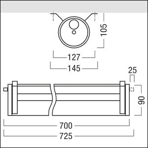 Luminaire tubulaire avec ø 90 mm, Flux lumineux du luminaire: 2300 lm, Efficacité lumineuse du luminaire: 144 lm/W. Rendu des couleurs Ra > 80, température de couleur 4000 K. Puissance du luminaire: 16 W, avec convertisseur à LED ; durée de vie des LED de 50000 h jusqu’à une diminution du flux lumineux de 80 % de la valeur initiale. Tolérance de la couleur (MacAdam intial): 3. Convient pour un montage au plafond ainsi qu'un montage mural à l'horizontale ou à la verticale. Autorisé pour une utilisation en intérieur et à l’extérieur dans des zones exposées aux intempéries. Température ambiante : -20°C à +35°C. Boîtier en Polyméhylméhacrylate (PMMA), résistant aux impacts (IK08), satiné et bouchons de fermeture en polyamide (PA). Joint en silicone (SI) inaltérable. Support d’appareillage en tôle d'acier blanc avec double couche de laque. Montage flexible grâce à des colliers de fixation en acier inoxydable. Raccordement électrique avec passe-câbles à vis, élément de compensation de pression intégré et borne de raccordement enfichable. Conforme IFS / BRC. Luminaire avec câble exempt d'halogène. IPX9K. SC1. Test au fil incandescent : PMMA 650°C. Dimensions : Ø90 x 700 mm poids : 2,3 kg