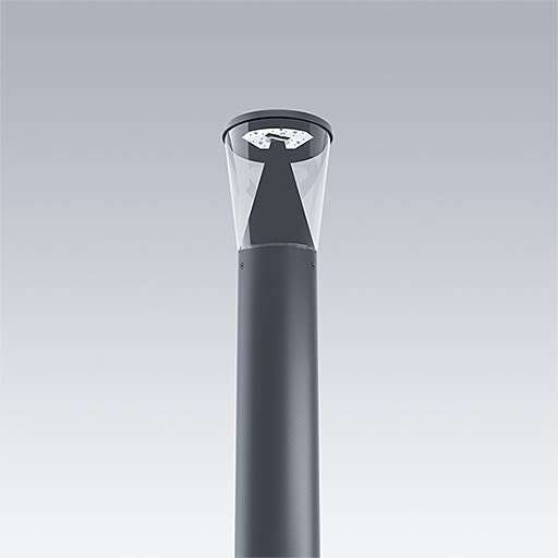 Colonne lumineuse étroite avec 18 LED alimentées en 700mA et distribution lumineuse Confort symétrique radial. Flux fixe Driver. Classe électrique II, IP66, IK10. Couvercle : aluminium fonderie (EN AC-44300). Finition : aluminium thermopoudré, gris anthracite 900 sablé texturé. Diffuseur : Polycarbonate (PC) anti-UV transparent. Pré-câblé avec 3 m de câble. Colonne à commander séparément. Livré avec LED 3 000 K.Dimensions : Ø234 x 559 mmPuissance du luminaire: 39 WPoids : 4,84 kgScx : 0.06 m²Efficacité lumineuse du luminaire: 100 lm/W