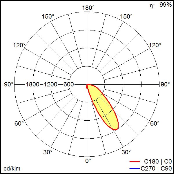 faible éblouissement selon EN 12464-1 (UGR Inf. à 19):