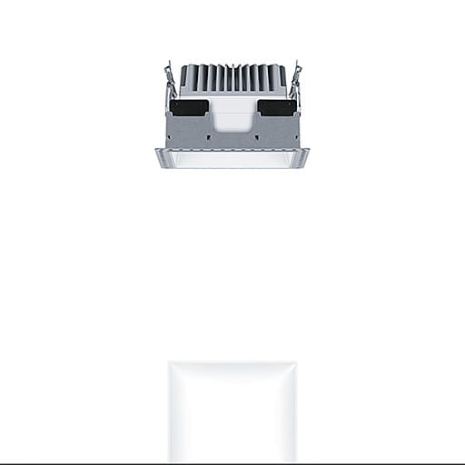 Plafonnier à diodes encastré sans cadre de recouvrement "trimless" ; utilisé en cas d'espace réduit dans le plafond : profondeur d'encastrement de seulement 100 mm ; luminaire à LED "tunable White" avec modification dynamique de la température de couleur, le flux lumineux du luminaire restant contant, réglable via signal DALI (DT8 standard) ; distribution symétrique extensive avec une efficacité maximale du luminaire et une technique d'éclairage optimale ; lampe : LED1800-927-65 ; Rendu des couleurs Ra > 90, température de couleur (tunable) 2700-6500 K () ; Tolérance de la couleur (MacAdam intial): 3; Puissance du luminaire: 23 W ; Flux lumineux du luminaire: 1800 lm, Efficacité lumineuse du luminaire: 78 lm/W ; durée de vie : 50000h avec 80 % du flux lumineux ; avec unité à ballast séparée Luminaire pilotable via DALI (via DALI uniquement) ; plage de gradation : 1-100 %, y compris "Fade-to Zero" ; unité réflecteur haut de gamme fixée sur la chambre lumineuse à LED par encliquetage ; chambre lumineuse à LED extrêmement efficace intégrée dans la gestion thermique passive optimisée en fonderie d'aluminium ; réflecteur : lisse, laqué blanc ; réflecteur en Polycarbonate (PC) de haute qualité, résistant aux UV ; montage rapide sans outil de l'unité luminaire par fermeture EASY-CLICK ; IP20 ; câblage du luminaire sans halogène ; raccordement : Bornier à 5 pôles à enfichage, possibilité de câblage traversant ; tension secteur : 220-240V / 0/50/60Hz, compatible avec une unité centrale de batterie de 220 Vcc ; montage sans outil à l'aide de clips de retenue pour plafonds de 1-25mm d'épaisseur ; découpe de plafond : 140x140mm, profondeur d'encastrement : 106mm ; poids : 0,84 kgNote :UGR<19, réflecteur aluminisé) pour applications bureautiques selon EN12464 Note : le cadre d'arasement (cadre planar) pour l'encastrement du luminaire à ras de plafond est à commander séparément (voir accessoires)