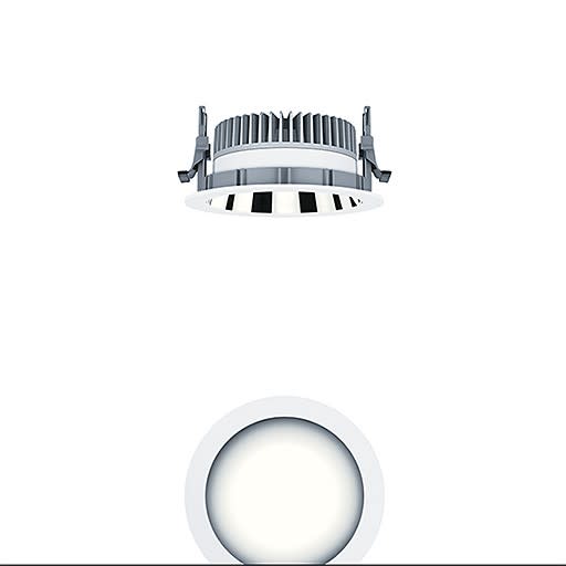 Plafonnier à diodes encastré (luminaire complet) ; à utiliser en cas d'espace réduit dans le plafond : profondeur d'encastrement < 100 mm ; luminaire à LED « tunableWhite » avec modification dynamique de la température de couleur tout en ayant un flux lumineux constant, réglable via le signal DALI (DT8 standard) ; distribution lumineuse symétrique extensive avec une efficacité maximale du luminaire et une technique d'éclairage optimale ; équipement : LED1800-927-65 ; Rendu des couleurs Ra > 90, température de couleur (tunable) 2700-6500 K (blanc chaud - blanc neutre - blanc lumière du jour); Tolérance de la couleur (MacAdam intial): 3 ; Puissance du luminaire: 23 W ; Flux lumineux du luminaire: 1850 lm, Efficacité lumineuse du luminaire: 80 lm/W ; durée de vie : 50000 h avec 80% du flux lumineux ; avec unité à ballast séparée Luminaire pilotable via DALI (via DALI uniquement) ; plage de gradation : 1-100% ; avec « Fade-to Zero » ; unité réflecteur haut de gamme se fixant sur la chambre lumineuse modulaire à LED grâce à la fermeture à baïonnette, chambre lumineuse à LED extrêmement efficace intégrée dans la gestion thermique passive optimisée en fonderie d'aluminium ; réflecteur : lisse, aluminisé, haut brillant, sans irisation ; réflecteur/collerette formant une unité en Polycarbonate (PC) de haute qualité, résistant aux UV ; Collerette blanche ; collerette d’encastrement en Polycarbonate renforcé aux fibres de verre (PC), gris ; montage rapide sans outil de l'unité d’éclairage grâce à la fermeture à baïonnette ; IP44_IP20 ; câblage du luminaire sans halogène ; raccordement : Bornier à 5 pôles à enfichage ; Câblage en dérivation possible ; tension secteur : 220-240V / 0/50/60Hz, compatible avec une unité centrale de batterie de 220 Vcc ; montage rapide sans outil à l'aide de clips de fixation anti-dérapants pour épaisseurs de plafond de 1 à 40 mm ; découpe du plafond : 150 mm, profondeur d'encastrement : 100 mm pour des épaisseurs de plafond comprises entre 1 et 25 mm ; poids : 0,77 kg ;Note : pour les applications dans les bureaux selon la norme EN12464 (UGR < 19, réflecteur aluminisé), une collerette de défilement supplémentaire doit être commandée séparément !