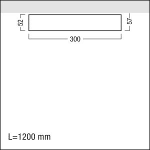 Plafonnier apparent à LED plat et modulaire, avec optique à lentille. Puissance du luminaire: 19,5 W, avec convertisseur à LED ; durée de vie des LED : après 100000 h, diminution du flux lumineux jusqu'à 95 % de la valeur initiale. Tolérance de la couleur (MacAdam intial): 3. Flux lumineux du luminaire: 2680 lm, Efficacité lumineuse du luminaire: 137 lm/W. Rendu des couleurs Ra > 80, température de couleur 4000 K. Guidage du flux par optique à lentille carrée, répartition sans éblouissement UGR < 19 et L65 < 3000 cd/m² conforme à EN 12464 ; peu sensible à la poussière et nettoyage facile ; corps du luminaire plat en tôle d'acier thermopoudré blanc ; ; hauteur visible du luminaire de 52 mm. Luminaire avec câble exempt d'halogène ; ; Dimensions : 1200 x 300 x 52 mm, poids : 7 kg