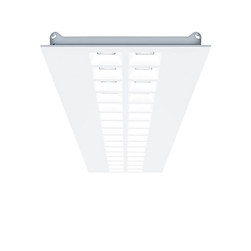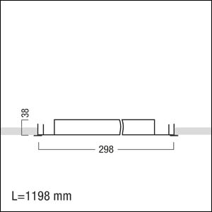 Plafonnier encastré à LED modulaire avec optique à lentille. Puissance du luminaire: 25,7 W, avec convertisseur à LED ; durée de vie des LED de 100000 h avec diminution du flux lumineux jusqu'à 95 % de la valeur initiale. Tolérance de la couleur (MacAdam intial): 3. Flux lumineux du luminaire: 3670 lm, Efficacité lumineuse du luminaire: 143 lm/W. Rendu des couleurs Ra > 80, température de couleur 3000 K. Guidage du flux par optique à lentille carrée, répartition sans éblouissement avecUGR < 19 et L65 < 3000 cd/m² conforme à EN 12464 ; peu sensible à la poussière et nettoyage facile. Luminaire avec raccordement électrique externe. Installation en luminaire à insérer dans les découpes de plafonds modulaires avec système de support visible. Corps entôle d'acier blanc. Luminaire avec câble exempt d'halogène ; ; Dimensions : 1198 x 298 x 38 mm, poids : 4,34 kg