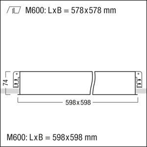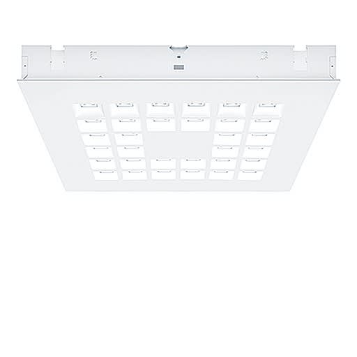 Plafonnier encastré à LED modulaire avec optique à lentille. Puissance du luminaire: 18,5 W, Luminaire pilotable via DALI (via DALI uniquement) avec convertisseur à LED ; durée de vie des LED de 100000 h avec diminution du flux lumineux jusqu'à 95 % de la valeur initiale. Tolérance de la couleur (MacAdam intial): 3. Flux lumineux du luminaire: 2750 lm, Efficacité lumineuse du luminaire: 149 lm/W. Rendu des couleurs Ra > 80, température de couleur 4000 K. Guidage du flux par optique à lentille carrée, répartition sans éblouissement avec UGR < 16 et L65 < 1000 cd/m² conforme à EN 12464:2011 ; peu sensible à la poussière et nettoyage facile. Corps du luminaire plat en tôle d'acier laqué blanc. Installation en luminaire à insérer dans les ouvertures de plafond et les plafonds modulaires avec système de support masqué ou visible. Kit de fixation à commander séparément ; Luminaire avec câble exempt d'halogène ; ; Dimensions : 598 x 598 x 74 mm, poids : 6,62 kg