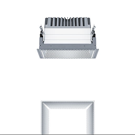 Plafonnier encastré à LED sans cadre de recouvrement « trimless » ; luminaire à LED « StableWhite » à distribution symétrique extensive avec efficacité maximale du luminaire et technique lumineuse optimale ; équipement : LED2500-930 ; Rendu des couleurs Ra > 90 (R9 > 50), température de couleur 3000 K (blanc chaud) ; Tolérance de la couleur (MacAdam intial): 2 ; Puissance du luminaire: 19 W ; Flux lumineux du luminaire: 2460 lm, Efficacité lumineuse du luminaire: 129 lm/W ; durée de vie : 100000 h avec 90% du flux lumineux ou 50000 h avec 95% du flux lumineux ; avec unité à ballast séparée Luminaire pilotable via DALI (via DALI uniquement) ; avec unité réflecteur haut de gamme se fixant sur la chambre lumineuse modulaire à LED grâce à la fermeture à encliqueter ; chambre lumineuse à LED extrêmement efficace intégrée dans la gestion thermique passive optimisée en aluminium injecté sous pression ; réflecteur : , à facettes, aluminisé, grand brillant, sans irisation ; réflecteur en Polycarbonate (PC) de haute qualité, résistant aux UV ; montage rapide sans outil de l'unité d’éclairage grâce à la fermeture EASY-CLICK ; IP20 ; câblage du luminaire sans halogène ; raccordement : Bornier à 5 pôles à enfichage, possibilité de câblage en dérivation ; tension secteur : 220-240V / 0/50/60Hz, compatible avec une unité centrale de batterie de 220 Vcc ; montage rapide sans outil à l'aide de clips de fixation pour épaisseurs de plafond de 1 à 25 mm ; découpe du plafond : 190 x 190 mm, profondeur d’encastrement : 126 mm ; poids : 1,23 kg ;Note : UGR < 19 (réflecteur aluminisé) pour les applications dans les bureaux selon la norme EN12464Note : le cadre d'arasement (cadre planar) pour l'encastrement du luminaire à ras de plafond doit être commandé séparément (voir accessoires)