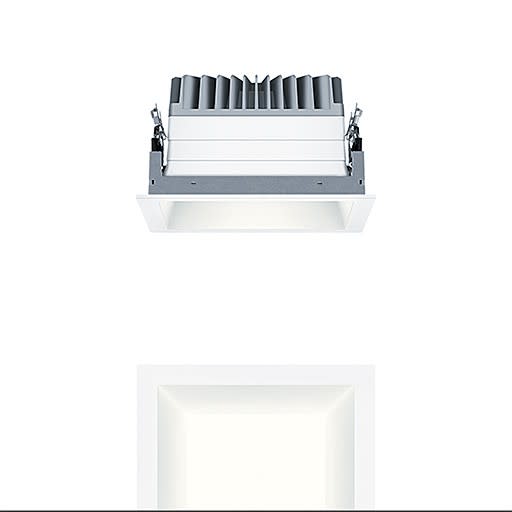 Plafonnier encastré à LED (luminaire complet) ; luminaire à LED stableWhite à distribution extensive symétrique du flux avec une excellente efficacité lumineuse et une technique d'éclairage optimale ; lampe : 19 W LED830 ; Rendu des couleurs Ra > 80, température de couleur 3000 K (blanc chaud) ; Tolérance de la couleur (MacAdam intial): 3 ; Flux lumineux du luminaire: 2384 lm, Efficacité lumineuse du luminaire: 125 lm/W. Durée de vie : 50000 h à 85 % du flux lumineux ; Luminaire pilotable via DALI (via DALI uniquement) avec unité à ballasts séparée ; réflecteur de qualité encliqueté sur la cellule lumineuse modulaire à LED à haute efficacité intégrée dans la gestion thermique passive optimisée en aluminium injecté. Réflecteur : lisse, laqué blanc ; réflecteur/cadre de recouvrement en Polycarbonate (PC) de qualité, résistant aux UV, Cadre de recouvrement blanc, amovible. Cadre d'encastrement en fonderie d'aluminium. Montage rapide sans outil des luminaires par fermeture EASY CLICK ; IP44_IP20 ; luminaire à filerie exempte d'halogène. Raccordement : Bornier à 5 pôles à enfichage, repiquage possible ; tension d'alimentation : 220-240V / 0/50/60Hz, compatible avec une unité centrale de batterie de 220 Vcc. Montage : rapide sans outil par clips de retenue antidérapant pour des épaisseurs de plafond de 1 à 25 mm. Découpe au plafond : 190 mm x 190 mm, profondeur d'encastrement : 123 mm ; poids : 1,54 kg ;Note : UGR<19 pour les applications de bureau selon à la norme EN12464