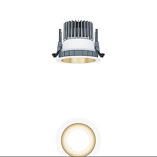 Plafonnier encastré à LED (luminaire complet ), « Stable White » ; angle de défilement de 60° ; équipement : 9 W LED840 ; 52 ° ; Rendu des couleurs Ra > 80, température de couleur 4000 K (blanc neutre) ; Tolérance de la couleur (MacAdam intial): 3 ; Flux lumineux du luminaire: 939 lm, Efficacité lumineuse du luminaire: 104 lm/W ; durée de vie : 50000 h avec 85% du flux lumineux ; avec unité à ballast Luminaire pilotable via DALI (via DALI uniquement) ; avec unité optique modulaire haut de gamme composée d’un réflecteur et d’une chambre lumineuse à LED intégrée dans la gestion thermique optimisée en fonderie d'aluminium ; réflecteur lisse revêtement teinté or mat ; réflecteur/collerette en Polycarbonate (PC) de haute qualité, résistant aux UV ; Collerette blanche ; collerette d’encastrement en Polycarbonate renforcé aux fibres de verre (PC), gris ; montage rapide sans outil de l'unité d’éclairage grâce à la fermeture à baïonnette ; IP20 ; câblage du luminaire sans halogène ; raccordement : Bornier à 5 pôles à enfichage ; Câblage en dérivation possible ; tension secteur : 220-240V / 0/50/60Hz, compatible avec une unité centrale de batterie de 220 Vcc ; montage rapide sans outil à l'aide de clips de fixation anti-dérapants pour épaisseurs de plafond de 1 à 40 mm ; découpe du plafond : 100 mm, profondeur d'encastrement : 100 mm pour des épaisseurs de plafond comprises entre 1 et 15 mm ; poids : 0,49 kg ;Note : UGR < 19 pour les applications dans les bureaux selon la norme EN12464 (en fonction du type de luminaire)