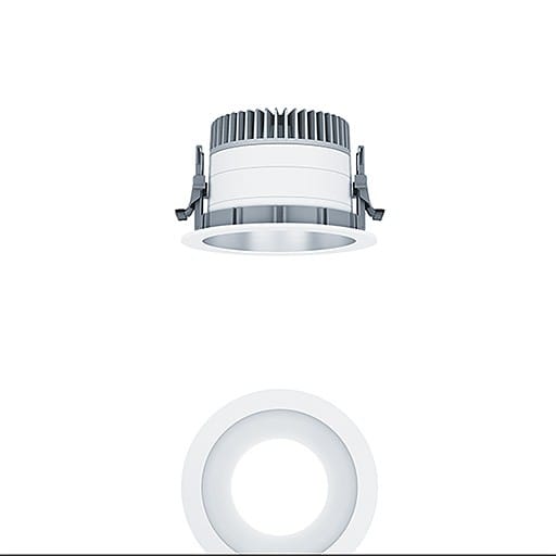 Plafonnier encastré à LED (luminaire complet ) ; luminaire à LED « StableWhite » à distribution symétrique extensive avec efficacité maximale du luminaire et technique lumineuse optimale ; équipement : 9 W LED840 ; Rendu des couleurs Ra > 80, température de couleur 4000 K (blanc neutre) ; Tolérance de la couleur (MacAdam intial): 3 ; Flux lumineux du luminaire: 900 lm, Efficacité lumineuse du luminaire: 100 lm/W ; durée de vie : 50000 h avec 85% du flux lumineux ; avec unité à ballast séparée Luminaire pilotable via DALI (via DALI uniquement) ; avec unité réflecteur haut de gamme se fixant sur la chambre lumineuse modulaire à LED grâce à la fermeture à baïonnette ; chambre lumineuse à LED extrêmement efficace intégrée dans la gestion thermique passive optimisée en aluminium injecté sous pression ; réflecteur : lisse, à revêtement mat teinté aluminium ; réflecteur/collerette formant une unité en Polycarbonate (PC) de haute qualité, résistant aux UV ; Collerette blanche ; collerette d’encastrement en Polycarbonate renforcé aux fibres de verre (PC), gris ; montage rapide sans outil de l'unité d’éclairage grâce à la fermeture à baïonnette ; IP44_IP20 ; câblage du luminaire sans halogène ; raccordement : Bornier à 5 pôles à enfichage ; ; ; ; Câblage en dérivation possible ; tension secteur : 220-240V / 0/50/60Hz, compatible avec une unité centrale de batterie de 220 Vcc ; montage rapide sans outil à l'aide de clips de fixation anti-dérapants pour épaisseurs de plafond de 1 à 40 mm ; découpe du plafond : 150 mm, profondeur d'encastrement : 113 mm ; poids : 0,84 kg ;Note : UGR < 19 (réflecteur aluminisé) pour les applications dans les bureaux selon la norme EN12464