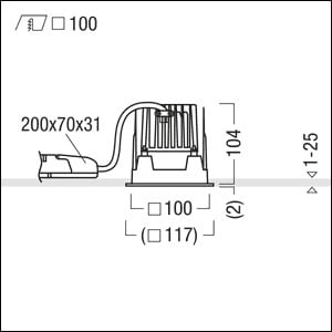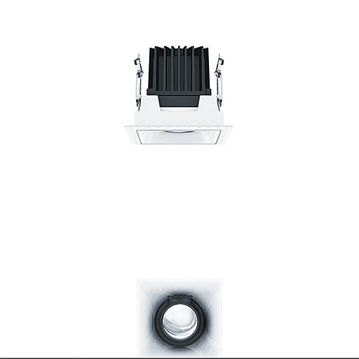 Plafonnier encastré à LED (réglable), sans cadre de recouvrement sans jointure ; avec technologie à lentille innovante ; réglage intuitif sans outil du cône d'éclairement par deux lentilles orientables en PMMA lorsque le luminaire est allumé ; cône d'éclairement orientable sur 360° dans le plan horizontal et sur 30° dans le plan vertical : répartition homogène de la lumière avec une intensité élevée des luminaires ; système d'éclairage fermé produisant un éclairage apaisant du plafond indépendant de l'orientation réglée pour l'éclairage. stableWhite ; lampe : 22 W LED940, Caractéristique photométrique flood ; réflecteur : lisse, laqué blanc (24 °) ; Rendu des couleurs Ra > 90, température de couleur 4000 K (blanc neutre ; Tolérance de la couleur (MacAdam intial): 3 ; Flux lumineux du luminaire: 780 lm, Efficacité lumineuse du luminaire: 35 lm/W. Durée de vie : 50000 h avec 85 % du flux lumineux ; avec unité à ballast Luminaire pilotable via DALI (via DALI uniquement) séparée ; unité optique haut de gamme intégrée dans la gestion thermique optimisée en fonderie d'aluminium ; réflecteur en Polycarbonate (PC) de qualité, résistant aux UV ; version sans cadre (sans jointure) ; montage rapide sans outil du luminaire par fermeture EASY-CLICK ; IP20 ; luminaire à filerie exempte d'halogène ; raccordement : Bornier à 5 pôles à enfichage ; possibilité de repiquage ; tension d'alimentation : 220-240 V / 0/50/60 Hz. Montage rapide sans outil à l'aide de clips de montage pour plafonds d'une épaisseur de 1 à 25 mm ; découpe du plafond : 100 x 100 mm, profondeur d'encastrement : 130 mm ; poids : 0,63 kgNote : anneau d'arasement (anneau planar) pour l'encastrement affleurant au plafond à commander séparément (voir la rubrique accessoires)
