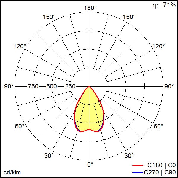 faible éblouissement selon EN 12464-1 (UGR Inf. à 19):