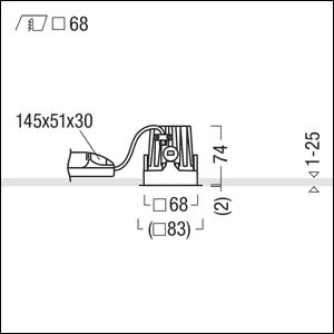 Plafonnier encastré à LED sans cadre de recouvrement sans jointure (trimless), stableWhite ; excellente qualité de lumière grâce au réflecteur spécialement conçu ; lampe : 10 W LED930, Caractéristique photométrique very wideFlood ; réflecteur : lisse, aluminisé, grand brillant et sans irisation (66 °) ; Rendu des couleurs Ra > 90, température de couleur 3000 K (blanc chaud ; Tolérance de la couleur (MacAdam intial): 3 ; Flux lumineux du luminaire: 697 lm, Efficacité lumineuse du luminaire: 70 lm/W. Durée de vie : 50000 h avec 85 % du flux lumineux ; avec unité à ballast Luminaire pilotable via DALI (via DALI uniquement) ; unité optique modulaire haut de gamme composée du réflecteur et de la chambre lumineuse à LED intégrée dans la gestion thermique optimisée en fonderie d'aluminium ; réflecteur en Polycarbonate (PC) de qualité, résistant aux UV ; montage rapide sans outil du luminaire par fermeture EASY-CLICK ; IP20 ; luminaire à filerie exempte d'halogène ; raccordement : Bornier à 5 pôles à enfichage ; tension d'alimentation : 220-240V / 0/50/60Hz, compatible avec une unité centrale de batterie de 220 Vcc. Montage : sans outil, rapide par clips de retenue antiglisse pour des épaisseurs de plafond de 1 à 25 mm ; découpe du plafond : 68 x 68 mm, profondeur d'encastrement : 100 mm ; poids : 0,32 kgNote : Le cadre d'arasement (cadre planar) pour le montage du luminaire à ras du plafond est à commander séparément (voir la rubrique Accessoires)