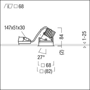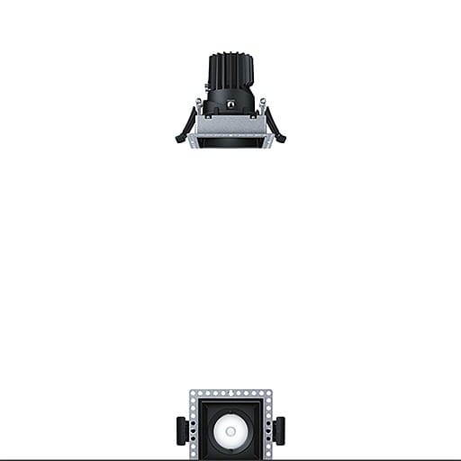 Plafonnier encastré à LED (luminaire complet réglable), sans cadre de recouvrement sans jointure (trimless) ; avec technologie de lentilles innovante ; système de lentilles pour éclairage d'accentuation de qualité, flexible ; réglage intuitif sans outil du cône d'éclairement lorsque le luminaire est allumé, cône d'éclairement orientable sur 355° dans le plan horizontal et sur 27° dans le plan vertical ; répartition uniforme optimisée de l'éclairage à des intensités élevées, transition douce et lumière diffuse réduite du cône d'éclairement ; lampe : 10 W LED940, Caractéristique photométrique flood ; réflecteur : lisse, laqué noir (30 °) ; Rendu des couleurs Ra > 90, température de couleur 4000 K (blanc neutre) ; Tolérance de la couleur (MacAdam intial): 3 ; Flux lumineux du luminaire: 525 lm, Efficacité lumineuse du luminaire: 54 lm/W ; durée de vie : 50000 h avec 85 % de flux lumineux ; avec unité ballast séparée, Luminaire pilotable via DALI (via DALI uniquement); unité optique haut de gamme composée d'une platine à LED, d'une lentille en verre et d'un film intégrée dans la gestion thermique optimisée en fonderie d'aluminium ; optique secondaire formant une unité en Polycarbonate (PC) de qualité résistant aux UV ; degré de protection IP23 : pour encastrement dans des plafonds à structure fermée ; montage rapide sans outil du luminaire par fermeture EASY-CLICK ; luminaire à filerie exempte d'halogène ; branchement : Bornier à 5 pôles à enfichage ; tension d'alimentation : 220-240V/ 0/50/60Hz ; Montage : montage rapide sans outil par clips de retenue antidérapant pour des épaisseurs de plafond de 1 à 25 mm ; découpe du plafond : 68 x 68 mm, profondeur d'encastrement : 105 mm ; poids : 0,3 kgNote : cadre d'arasement (cadre planar) pour encastrement affleurant au plafond du luminaire à commander séparément (voir rubrique Accessoires)