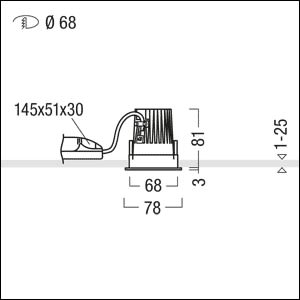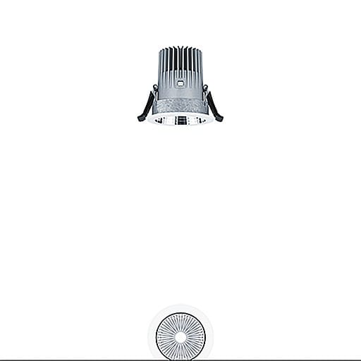 Plafonnier encastré à LED (luminaire complet), stableWhite ; excellente qualité de lumière grâce au réflecteur spécialement conçu ; lampe : 9 W LED927, Caractéristique photométrique spot ; réflecteur : à facettes, aluminisé, grand brillant et sans irisation (15 °) ; Rendu des couleurs Ra > 90, température de couleur 2700 K (blanc chaud ; Tolérance de la couleur (MacAdam intial): 3 ; Flux lumineux du luminaire: 510 lm, Efficacité lumineuse du luminaire: 57 lm/W. Durée de vie : 50000 h avec 85 % du flux lumineux ; avec unité à ballast Luminaire pilotable via DALI (via DALI uniquement) ; chambre lumineuse à LED intégrée dans la gestion thermique optimisée en fonderie d'aluminium ; réflecteur/collerette en Polycarbonate (PC) de qualité, résistant aux UV ; Collerette blanche ; anneau d'encastrement en fonderie d'aluminium ; montage rapide sans outil du luminaire par fermeture à baïonnette ; IP20 ; luminaire à filerie exempte d'halogène ; raccordement : Bornier à 5 pôles ; tension d'alimentation : 220-240V / 0/50/60Hz, compatible avec une unité centrale de batterie de 220 Vcc. Montage : sans outil, rapide par clips de retenue antiglisse pour des épaisseurs de plafond de 1 à 25 mm ; découpe du plafond : 68 mm, profondeur d'encastrement : 110 mm ; poids : 0,34 kg