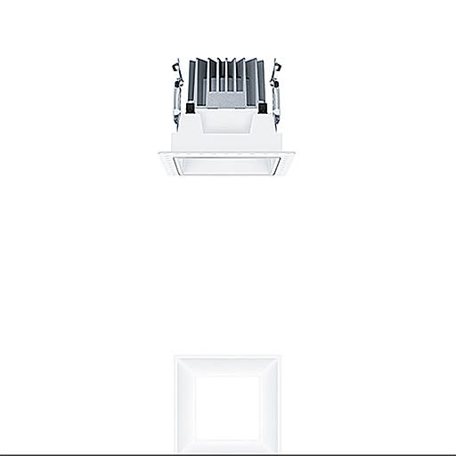 Plafonnier encastré à LED sans cadre de recouvrement « trimless », « Stable White » ; angle de défilement de 60°; équipement : LED1600-927 ; Rendu des couleurs Ra > 90 (R9 > 50), température de couleur 2700 K (blanc chaud) ; Tolérance de la couleur (MacAdam intial): 2 ; Puissance du luminaire: 15 W ; Flux lumineux du luminaire: 1527 lm, Efficacité lumineuse du luminaire: 102 lm/W ; durée de vie : 100000 h avec 90% du flux lumineux ou 50000 h avec 95% du flux lumineux ; avec unité à ballast Luminaire pilotable via DALI (via DALI uniquement) ; avec unité optique modulaire haut de gamme comprenant un réflecteur et une chambre lumineuse à LED intégrée dans la gestion thermique optimisée en fonderie d'aluminium ; réflecteur lisse laqué blanc ; réflecteur en Polycarbonate (PC) de haute qualité, résistant aux UV ; montage rapide sans outil de l'unité d’éclairage grâce à la fermeture EASY-CLICK ; IP44_IP20 ; câblage du luminaire sans halogène ; raccordement : Bornier à 5 pôles à enfichage, possibilité de câblage en dérivation ; tension secteur : 220-240V / 0/50/60Hz, compatible avec une unité centrale de batterie de 220 Vcc ; montage rapide sans outil à l'aide de clips de fixation pour épaisseurs de plafond de 1 à 25 mm ; découpe du plafond : 100 x 100 mm, profondeur d’encastrement : 106 mm ; poids : 0,56 kg ;Note : UGR < 19 pour les applications dans les bureaux selon la norme EN12464 (en fonction du type de luminaire) ;Note : le cadre d'arasement (cadre planar) pour l'encastrement du luminaire à ras de plafond doit être commandé séparément (voir accessoires)
