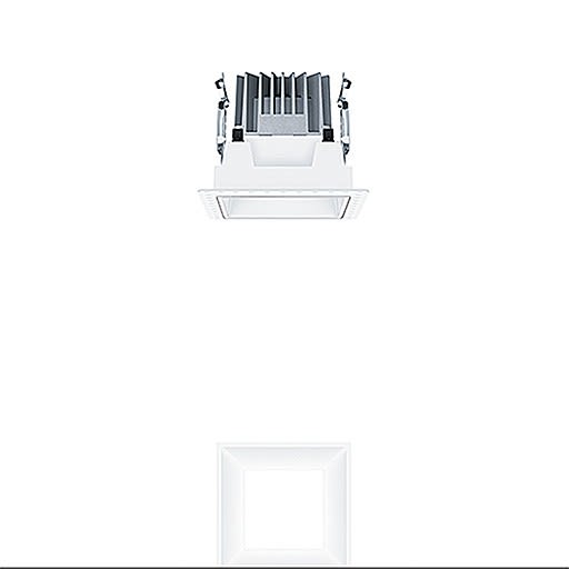 Plafonnier encastré à LED sans cadre de recouvrement « trimless », « Stable White » ; angle de défilement de 60°; équipement : LED750-940 ; Rendu des couleurs Ra > 90 (R9 > 50), température de couleur 4000 K (blanc neutre) ; Tolérance de la couleur (MacAdam intial): 2 ; Puissance du luminaire: 9 W ; Flux lumineux du luminaire: 877 lm, Efficacité lumineuse du luminaire: 97 lm/W ; durée de vie : 100000 h avec 90% du flux lumineux ou 50000 h avec 95% du flux lumineux ; avec unité à ballast Luminaire pilotable via DALI (via DALI uniquement) ; avec unité optique modulaire haut de gamme comprenant un réflecteur et une chambre lumineuse à LED intégrée dans la gestion thermique optimisée en fonderie d'aluminium ; réflecteur lisse à revêtement mat teinté aluminium ; réflecteur en Polycarbonate (PC) de haute qualité, résistant aux UV ; montage rapide sans outil de l'unité d’éclairage grâce à la fermeture EASY-CLICK ; IP44_IP20 ; câblage du luminaire sans halogène ; raccordement : Bornier à 5 pôles à enfichage, possibilité de câblage en dérivation ; tension secteur : 220-240V / 0/50/60Hz, compatible avec une unité centrale de batterie de 220 Vcc ; montage rapide sans outil à l'aide de clips de fixation pour épaisseurs de plafond de 1 à 25 mm ; découpe du plafond : 100 x 100 mm, profondeur d’encastrement : 106 mm ; poids : 0,56 kg ;Note : UGR < 19 pour les applications dans les bureaux selon la norme EN12464 (en fonction du type de luminaire) ;Note : le cadre d'arasement (cadre planar) pour l'encastrement du luminaire à ras de plafond doit être commandé séparément (voir accessoires)