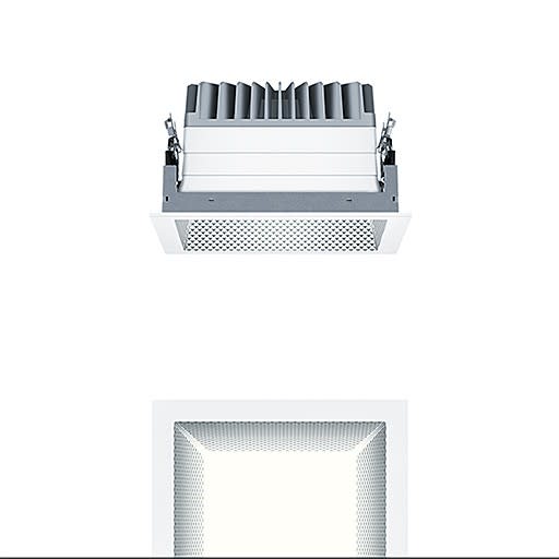 Plafonnier encastré à LED (luminaire complet) ; luminaire à LED « StableWhite » à distribution symétrique extensive avec efficacité maximale du luminaire et technique lumineuse optimale ; équipement : LED2500-930 ; Rendu des couleurs Ra > 90 (R9 > 50), température de couleur 3000 K (blanc chaud) ; Tolérance de la couleur (MacAdam intial): 2 ; Puissance du luminaire: 19 W ; Flux lumineux du luminaire: 2460 lm, Efficacité lumineuse du luminaire: 129 lm/W ; durée de vie : 100000 h avec 90% du flux lumineux ou 50000 h avec 95% du flux lumineux ; avec unité à ballast séparée Luminaire pilotable via DALI (via DALI uniquement) ; avec unité réflecteur haut de gamme se fixant sur la chambre lumineuse modulaire à LED grâce à la fermeture à encliqueter ; chambre lumineuse à LED extrêmement efficace intégrée dans la gestion thermique passive optimisée en aluminium injecté sous pression ; réflecteur : , à facettes, aluminisé, grand brillant, sans irisation ; réflecteur/cadre de recouvrement formant une unité en Polycarbonate (PC) de haute qualité, résistant aux UV ; Cadre de recouvrement blanc et amovible ; cadre d’encastrement en fonderie d'aluminium ; montage rapide sans outil de l'unité d’éclairage grâce à la fermeture EASY-CLICK ; IP44_IP20 ; câblage du luminaire sans halogène ; raccordement : Bornier à 5 pôles à enfichage, possibilité de câblage en dérivation ; tension secteur : 220-240V / 0/50/60Hz, compatible avec une unité centrale de batterie de 220 Vcc ; montage rapide sans outil à l'aide de clips de fixation pour épaisseurs de plafond de 1 à 25 mm ; découpe du plafond : 190 x 190 mm, profondeur d’encastrement : 123 mm ; poids : 1,48 kg ;Note : UGR < 19 (réflecteur aluminisé) pour les applications dans les bureaux selon la norme EN12464
