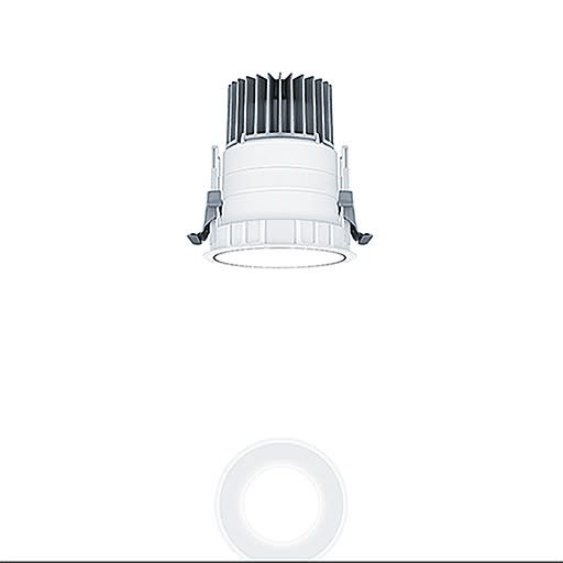 Plafonnier encastré à LED sans cadre de recouvrement « trimless », Stable White ; ; angle de défilement de 45°; équipement : LED750-930 ; Rendu des couleurs Ra > 90 (R9 > 50), température de couleur 3000 K (blanc chaud) ; Tolérance de la couleur (MacAdam intial): 2 ; Puissance du luminaire: 9 W ; Flux lumineux du luminaire: 788 lm, Efficacité lumineuse du luminaire: 88 lm/W ; durée de vie : 100000 h avec 90% du flux lumineux ou 50000 h avec 95% du flux lumineux ; avec unité à ballast Luminaire pilotable via DALI (via DALI uniquement) ; avec unité optique modulaire haut de gamme comprenant un réflecteur et une chambre lumineuse à LED intégrée dans la gestion thermique optimisée en fonderie d'aluminium ; réflecteur lisse laqué blanc ; réflecteur en Polycarbonate (PC) de haute qualité, résistant aux UV ; montage rapide sans outil de l'unité d’éclairage par fermeture à baïonnette ; IP20 ; câblage du luminaire sans halogène ; raccordement : Bornier à 5 pôles à enfichage; possibilité de câblage en dérivation ; tension secteur : 220-240V / 0/50/60Hz, compatible avec une unité centrale de batterie de 220 Vcc ; montage rapide sans outil à l'aide de clips de fixation anti-dérapants pour épaisseurs de plafond de 1 à 40 mm ; découpe du plafond : 100 mm, profondeur d'encastrement : 130 mm pour des épaisseurs de plafond comprises entre 1 et 15 mm ; poids : 0,55 kg ;Note : UGR < 19 pour les applications dans les bureaux selon la norme EN12464 (en fonction du type de luminaire)Note : l’anneau d'arasement (anneau planar) pour l'encastrement du luminaire à ras de plafond doit être commandé séparément (voir accessoires)