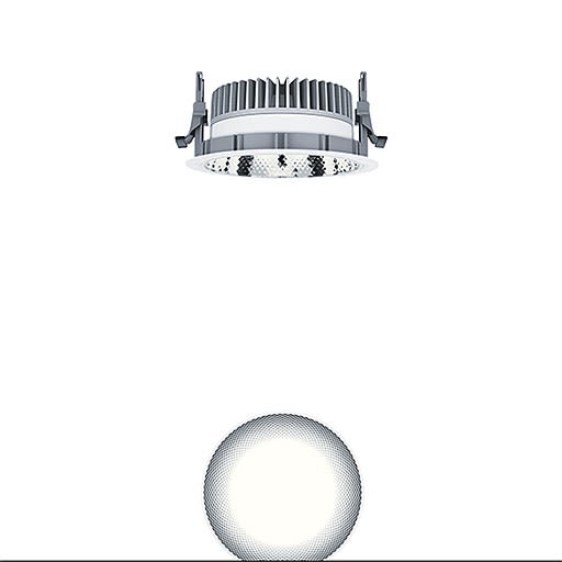 Plafonnier encastré à LED sans cadre de recouvrement « trimless »; à utiliser en cas d'espace réduit dans le plafond : profondeur d'encastrement < 100 mm ; luminaire à LED « StableWhite » à distribution symétrique extensive avec efficacité maximale du luminaire et technique lumineuse optimale ; équipement : LED1800-930 ; Rendu des couleurs Ra > 90 (R9 > 50), température de couleur 3000 K (blanc chaud) ; Tolérance de la couleur (MacAdam intial): 2 ; Puissance du luminaire: 15 W ; Flux lumineux du luminaire: 1880 lm, Efficacité lumineuse du luminaire: 125 lm/W ; durée de vie : 100000 h avec 90% du flux lumineux ou 50000 h avec 95% du flux lumineux ; avec unité à ballast séparée Luminaire pilotable via DALI (via DALI uniquement) ; avec unité réflecteur haut de gamme se fixant sur la chambre lumineuse modulaire à LED grâce à la fermeture à baïonnette ; chambre lumineuse à LED extrêmement efficace intégrée dans la gestion thermique passive optimisée en aluminium injecté sous pression ; réflecteur : , à facettes, aluminisé, grand brillant, sans irisation ; réflecteur en Polycarbonate (PC) de haute qualité, résistant aux UV ; montage rapide sans outil de l'unité d’éclairage grâce à la fermeture à baïonnette ; IP20 ; câblage du luminaire sans halogène ; raccordement : Bornier à 5 pôles à enfichage; possibilité de câblage en dérivation ; tension secteur : 220-240V / 0/50/60Hz, compatible avec une unité centrale de batterie de 220 Vcc ; montage rapide sans outil à l'aide de clips de fixation anti-dérapants pour épaisseurs de plafond de 1 à 40 mm ; découpe du plafond : 150 mm, profondeur d'encastrement :81 mm pour des épaisseurs de plafond comprises entre 1 et 25 mm ; poids : 0,71 kg ;Note : le cadre d'arasement (cadre planar) pour l'encastrement du luminaire à ras de plafond doit être commandé séparément (voir accessoires). Pour les applications dans les bureaux selon la norme EN12464 (UGR < 19, réflecteur aluminisé), un cadre de défilement supplémentaire doit être commandé séparément