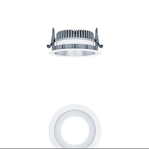 Plafonnier encastré à LED (luminaire complet) ; ; à utiliser en cas d'espace réduit dans le plafond : profondeur d'encastrement < 100 mm ; luminaire à LED « StableWhite » à distribution symétrique extensive avec efficacité maximale du luminaire et technique lumineuse optimale ; équipement : LED1800-940 ; Rendu des couleurs Ra > 90 (R9 > 50), température de couleur 4000 K (blanc neutre) ; Tolérance de la couleur (MacAdam intial): 2 ; Puissance du luminaire: 15 W ; Flux lumineux du luminaire: 1786 lm, Efficacité lumineuse du luminaire: 119 lm/W ; durée de vie : 100000 h avec 90% du flux lumineux ou 50000 h avec 95% du flux lumineux ; avec unité à ballast séparée Luminaire pilotable via DALI (via DALI uniquement) ; avec unité réflecteur haut de gamme se fixant sur la chambre lumineuse modulaire à LED grâce à la fermeture à baïonnette ; chambre lumineuse à LED extrêmement efficace intégrée dans la gestion thermique passive optimisée en aluminium injecté sous pression ; réflecteur : lisse, à revêtement mat teinté aluminium ; réflecteur/collerette formant une unité en Polycarbonate (PC) de haute qualité, résistant aux UV ; Collerette blanche ; collerette d’encastrement en Polycarbonate renforcé aux fibres de verre (PC), gris ; montage rapide sans outil de l'unité d’éclairage grâce à la fermeture à baïonnette ; IP44_IP20 ; câblage du luminaire sans halogène ; raccordement : Bornier à 5 pôles à enfichage; possibilité de câblage en dérivation ; tension secteur : 220-240V / 0/50/60Hz, compatible avec une unité centrale de batterie de 220 Vcc ; montage rapide sans outil à l'aide de clips de fixation anti-dérapants pour épaisseurs de plafond de 1 à 40 mm ; découpe du plafond : 150 mm, profondeur d'encastrement : 81 mm pour des épaisseurs de plafond comprises entre 1 et 25 mm ; poids : 0,79 kg ;Note : pour les applications dans les bureaux selon la norme EN12464 (UGR < 19, réflecteur aluminisé), une collerette de défilement supplémentaire doit être commandée séparément