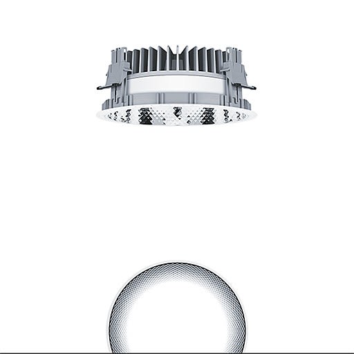 Plafonnier encastré à LED sans cadre de recouvrement « trimless »; à utiliser en cas d'espace réduit dans le plafond : profondeur d'encastrement < 100 mm ; luminaire à LED « StableWhite » à distribution symétrique extensive avec efficacité maximale du luminaire et technique lumineuse optimale ; équipement : LED1800-940 ; Rendu des couleurs Ra > 90 (R9 > 50), température de couleur 4000 K (blanc neutre) ; Tolérance de la couleur (MacAdam intial): 2 ; Puissance du luminaire: 15 W ; Flux lumineux du luminaire: 1938 lm, Efficacité lumineuse du luminaire: 129 lm/W ; durée de vie : 100000 h avec 90% du flux lumineux ou 50000 h avec 95% du flux lumineux ; avec unité à ballast séparée Luminaire pilotable via DALI (via DALI uniquement) ; avec unité réflecteur haut de gamme se fixant sur la chambre lumineuse modulaire à LED grâce à la fermeture à baïonnette ; chambre lumineuse à LED extrêmement efficace intégrée dans la gestion thermique passive optimisée en aluminium injecté sous pression ; réflecteur : , à facettes, aluminisé, grand brillant, sans irisation ; réflecteur en Polycarbonate (PC) de haute qualité, résistant aux UV ; montage rapide sans outil de l'unité d’éclairage grâce à la fermeture à baïonnette ; IP20 ; câblage du luminaire sans halogène ; raccordement : Bornier à 5 pôles à enfichage; possibilité de câblage en dérivation ; tension secteur : 220-240V / 0/50/60Hz, compatible avec une unité centrale de batterie de 220 Vcc ; montage rapide sans outil à l'aide de clips de fixation anti-dérapants pour épaisseurs de plafond de 1 à 40 mm ; découpe du plafond : 200 mm, profondeur d'encastrement : 91 mm ; poids : 1,11 kg ;Note : le cadre d'arasement (cadre planar) pour l'encastrement du luminaire à ras de plafond doit être commandé séparément (voir accessoires). Pour les applications dans les bureaux selon la norme EN12464 (UGR < 19, réflecteur aluminisé), un cadre de défilement supplémentaire doit être commandé séparément
