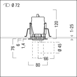 Unité d'éclairage encastrée avec 1 tête de projecteur à LED, taille midi ; avec un système de lentilles pour un éclairage d'accentuation de qualité dans les musées et les salles d'exposition ; les combinaisons de platines à LED, lentille et film produisent des répartitions lumineuses d'une intensité élevée ainsi qu'une transition douce, sans lumière diffuse du cône d'éclairement ; lampe : 1 7,2 W, Rendu des couleurs Ra > 90, température de couleur 4000 K ; Luminaire / projecteur à distribution extensive flood ; tolérance chromatique : SDCM 2 initial, platines à LED de premier choix ; Flux lumineux du luminaire: 700 lm, Efficacité lumineuse du luminaire: 97 lm/W ; durée de vie : 50000 h avec 90 % de flux lumineux ; tête de projecteur orientable sur 350° dans le plan horizontal et sur 90° dans le plan vertical ; tête de projecteur en fonderie d'aluminium laqué blanc, collerette laquée blanc laqué. Optique comprenant une lentille en verre et un film en Film plastique ; la bague avant sert au défilement et à la réception de films ; boîtier d'encastrement en fonderie d'aluminium laqué blanc, collerette laquée blanc ; montage par fixation vissée masquée, pour des épaisseurs de plafond de 1 à 25 mm ; découpe du plafond : Ø 72 mm, profondeur d'encastrement : 120 mm ; poids : 0,24 kgNote : appareillage (600 mA) ; câble d'alimentation et boîtier de distribution à commander séparément. Film interchangeable pour obtenir d'autres répartitions lumineuses ; le réflecteur annulaire ou le tube de défilement prolongé peuvent remplacer la bague avant.;N'est pas recommandé pour une utilisation avec des détecteurs de présence et de mouvements.