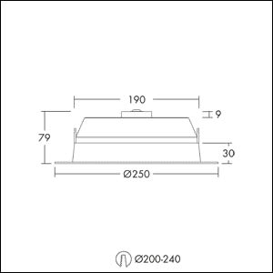 THORNECO - AMY VARIO - Downlight à température de couleur réglable 3000K, 3500K et 4000K. IP44. Pour le remplacement des fluorescents jusqu'à Ø240mm et dans des plafonds jusqu'à 20 mm d'épaisseur. Efficacité élevée 100lm/W. Durée de vie des