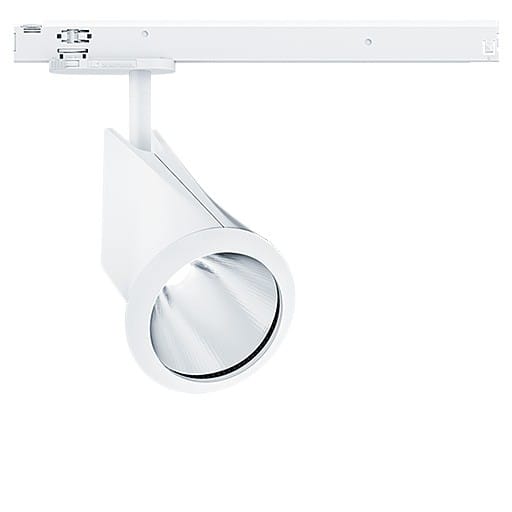 Projecteur à LED avec température de couleur stabilisée « Essential + stableWhite » ; optimisé pour un éclairage de mise en valeur efficace dans les boutiques et les espaces de vente ; accentuation brillante avec des réflecteurs de précision ; design compact et intemporel du projecteur, spécialement conçu pour l'intégration de modules à LED haute puissance ; bilan thermique innovant par le biais d'un système de refroidissement passif ; Luminaire avec adaptateur universel triphasé et convertisseur intégré InTrack (pour rails conducteurs triphasés / L3+DALI, uniquement pour un montage au plafond), Commande sans fil contrôlée par appli avec Bluetooth® 4.x - basicDIM Wireless ; équipement : 1/28W LED2300-930 ; (36 °) Luminaire / projecteur à répartition extensive wideFlood et réflecteur argenté à symétrie de rotation ; Rendu des couleurs Ra > 90, température de couleur 3000 K (blanc chaud) ; Tolérance de la couleur (MacAdam intial): 2 ; Flux lumineux du luminaire: 2300 lm, Efficacité lumineuse du luminaire: 82 lm/W ; durée de vie : 50000 h jusqu'à une diminution du flux lumineux à 85 % ; lumière sans UVA et IR ; Puissance du luminaire: 28 W ; tension secteur : 220-240V/ 50/60Hz ; projecteur orientable sur le plan horizontal à 360° et sur le plan vertical à 90° ; boîtier de projecteur en fonderie d'aluminium, surface : laque microstructurée blanche ; fixation de la bague avant sur le boîtier du projecteur grâce à la fermeture à baïonnette ; changement simple et sans outil du réflecteur et des accessoires ; miroir réflecteur en Polycarbonate (PC) aluminisé, grand brillant, non iridescent ; miroir réflecteur servant de réflecteur de rechange et pouvant être adapté ; dimensions : 235 x 100 x 261 mm ; poids : 0,67 kg ;Note : les sorties ponctuelles sont inadaptées !Note Bluetooth® : Définition radio: basicDIM Wireless - Bluetooth® 4.x, Fréquence radio: 2,4...2,483 GHz, Puissance d'émission radio: + 4dBm ; disposition des projecteurs : commande mobile par rapport au projecteur : max. 6 m, entre deux projecteurs : max. 4 m !