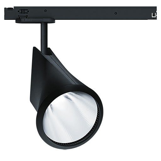 Projecteur à LED avec température de couleur stabilisée « Essential + stableWhite » ; optimisé pour un éclairage de mise en valeur efficace dans les boutiques et les espaces de vente ; accentuation brillante avec des réflecteurs de précision permettant une distribution photométrique précise ; design compact et intemporel du projecteur, spécialement conçu pour l'intégration de modules à LED haute puissance ; bilan thermique innovant par le biais d'un système de refroidissement passif ; Luminaire avec adaptateur triphasé et convertisseur intégré InTrack (pour rails conducteurs triphasés / L3+DALI, uniquement pour un montage au plafond), Luminaire commutable on/off ; équipement : 1/42W LED3800-940 ; (12 °) Luminaire / projecteur à distribution intensive spot et réflecteur argenté à symétrie de rotation ; Rendu des couleurs Ra > 90, température de couleur 4000 K (blanc neutre) ; Tolérance de la couleur (MacAdam intial): 2 ; Flux lumineux du luminaire: 3800 lm, Efficacité lumineuse du luminaire: 90 lm/W ; durée de vie : 50000 h jusqu'à une diminution du flux lumineux à 85 % ; lumière sans UVA et IR ; Puissance du luminaire: 42 W ; tension secteur : 220-240 V / 50/60 Hz ; projecteur orientable sur le plan horizontal à 360° et sur le plan vertical à 90° ; boîtier de projecteur en fonderie d'aluminium, surface : laque microstructurée noir mat ; fixation de la bague avant sur le boîtier du projecteur grâce à la fermeture à baïonnette ; changement simple et sans outil du réflecteur et des accessoires ; miroir réflecteur en Polycarbonate (PC) aluminisé, grand brillant, non iridescent ; miroir réflecteur servant de réflecteur de rechange et pouvant être adapté ; dimensions : 235 x 120 x 331 mm ; poids : 1 kg ;Note : les sorties ponctuelles sont inadaptées !
