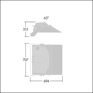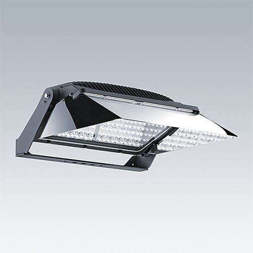 Projecteur LED de haute performance avec une distribution lumineuse 65° asymétrique par 264 LED. Appareillage externe, à commander séparément. Classe électrique I, IP66, Résistance aux impacts : IK08. Corps : aluminium fonderie, thermopoudré texturé gris anthracite 900 sablé. Boîtier : 4 mm d’épaisseur, trempé plat verre. Visière : Spéculaire (réflectif). Luminaire fixé par un seul boulon à travers un trou central de Ø 22 mm, ou deux boulons à travers des trous de Ø 15 mm à 200 mm d’intervalle. Réglage par un simple dispositif de réglage (à commander séparément). Idéal pour les terrains de sport et les stades ou l’éclairage de grands espaces. Fonctionnement à faible papillottement (< 1 %) adapté à la télédiffusion haute définition. Livré avec LED 4 000 K avec Indice min. de rendu des couleurs: 70. Dimensions : 694 x 707 x 315 mmPoids : 22,4 kgScx : 0.196 m²