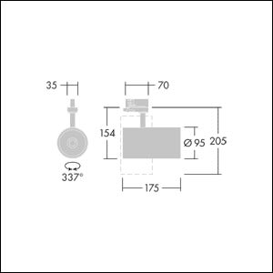 Projecteur LED pour installations triphasées avec distribution lumineuse de type projection et température de couleurs stabilisée. Electronique, Luminaire commutable on/off. Classe électrique I, IP20. Corps : peinture micro-texturée aluminium fonderie noir. Réflecteur : PC « sputtered ». Projecteur avec rotation jusqu’à 337° et pivot jusqu’à 90°. Livré avec LED 3 000 KCet article est emballé à l’unité et peut également être commandé avec un emballage en vrac.Dimensions : Ø95 x 205 mmPuissance du luminaire: 36,8 WFlux lumineux du luminaire: 3600 lmEfficacité lumineuse du luminaire: 98 lm/WPoids : 0,72 kg