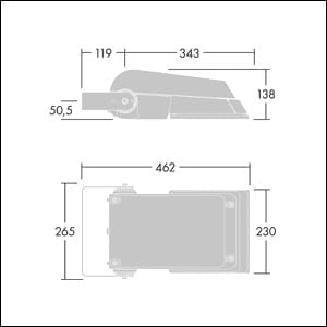 Projecteur LED compact et polyvalent pour l'éclairage de grands espaces. Avec corps Small. convertisseur à LED configuré pour une réduction de puissance, fonctionnant 3 heures avant et 5 heures après le point milieu de la nuit calculé, alimentant 24 LED à 700mA avec une distribution lumineuse Route extra large. IP66, IK08, Classe électrique II. Corps : fonderie aluminium (EN AC-44300), Gris pâle 150 sablé et texturé (similaire à RAL9006).. Fermeture : trempé verre de mm d’épaisseur. Avec fourche de montage réversible, Equipé d'un 50% circuit de réduction de puissance, qui entre en vigueur 3 heures avant et 5 heures après un minuit calculé. Il peut être désactivé à l'installation avec un interrupteur interne facilement accessible. Livré avec LED 4 000 K.Pas compatible avec les systèmes UrbaSens.Dimensions : 462 x 265 x 139 mmPuissance du luminaire: 52 WFlux lumineux du luminaire: 7790 lmEfficacité lumineuse du luminaire: 150 lm/WPoids : 6,2 kgScx : 0.05 m²