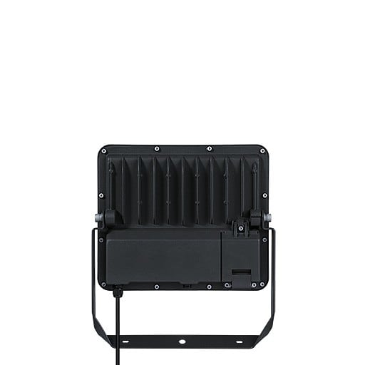 Projecteur LED haute puissance avec distribution lumineuse asymétrique, technologie FLEX, IP66, pour des applications à l’extérieur. Puissance du luminaire: 80 W, durée de vie : 50 000 h L80, Flux lumineux global: 10000 lm. Efficacité lumineuse du luminaire: 125 lm/W. Rendu des couleurs Ra > 80, température de couleur 3000 K, Tolérance de la couleur (MacAdam intial): 5, Résistance aux impacts : IK08. Membrane climatique pour la régulation automatique du climat. Protection contre les surtensions de 10 kV. Pré-câblé avec un câble d'alimentation (1 m) et un connecteur permettant un câblage facile et sans outil. Avec cellule photoélectrique réglable intégrée. Classe de corrosion C4. Le produit ne doit pas être installé dans des environnements chlorés. Corps : fonderie d'aluminium (cuivre < 0,1%), gris anthracite (RAL 7016), crosse : acier, gris anthracite. Vasque : verre trempé. Puissance d'entrée réglable sur site en 3 étapes (FLEX1 : 10000 lm (80W), FLEX2 : 9000 lm (70W), FLEX3 : 7500 lm (55W)). Pour les données flex d’autres températures de couleur, veuillez consulter notre site Internet. Dimensions : 330 x 359 x 56 mm, poids : 3,2 kg.