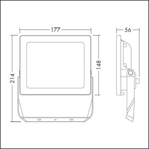 Projecteur LED avec distribution lumineuse symétrique, technologie FLEX, IP65, pour des applications à l’extérieur. Flux lumineux global: 5000 lm, Puissance du luminaire: 40 W, Efficacité lumineuse du luminaire: 125 lm/W. Rendu des couleurs Ra > 80, température de couleur 3000/3500/4000 K réglable par le biais d’un interrupteur sur 3000 K, 3500 K ou 4000 K. Durée de vie : 50 000 h @L80, Tolérance de la couleur (MacAdam intial): 5. 5 ans de garantie. Résistance aux impacts : IK08. La technologie FLEX permet de régler la puissance d'entrée sur site en 3 étapes (FLEX1 : 5000 lm (40W), FLEX2 : 4000 lm (30 W), FLEX3 : 3300 lm (23W)). Pour les données flex d’autres températures de couleur, veuillez consulter notre site Internet. Dimensions : 177 x 214 x 56 mm, poids : 0,9 kg.