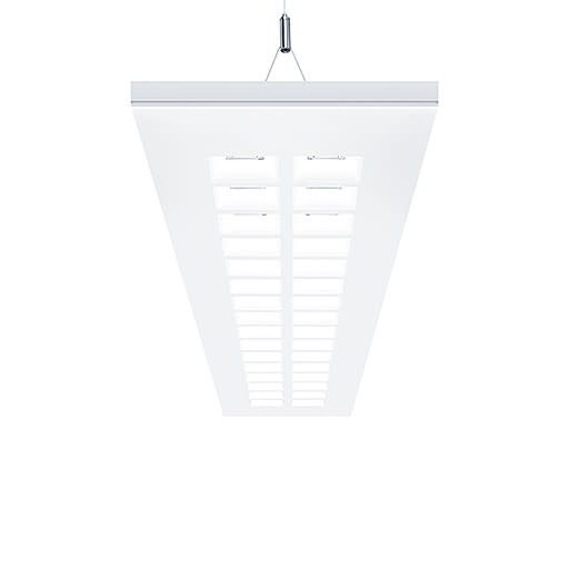 Réglette à LED pour chemin lumineux plat et modulaire, avec optique à lentille. Puissance du luminaire: 40,7 W, avec convertisseur à LED ; durée de vie des LED : après 100000 h, diminution du flux lumineux jusqu'à 95 % de la valeur initiale. Tolérance de la couleur (MacAdam intial): 3. Flux lumineux du luminaire: 5940 lm, Efficacité lumineuse du luminaire: 146 lm/W. Rendu des couleurs Ra > 80, température de couleur 4000 K. Guidage du flux par optique à lentille carrée, répartition sans éblouissement avec UGR < 19 et L65 < 3000 cd/m² conforme à EN 12464 ; peu sensible à la poussière et nettoyage facile ; corps du luminaire plat en tôle d'acier thermopoudré blanc ; raccord, suspension à câble et alimentation électrique non fournis (à commander séparément). Corps avec hauteur visible du luminaire de 41 mm. Luminaire avec câble exempt d'halogène ; Dimensions : 1348 x 238 x 41 mm, poids : 6,8 kg