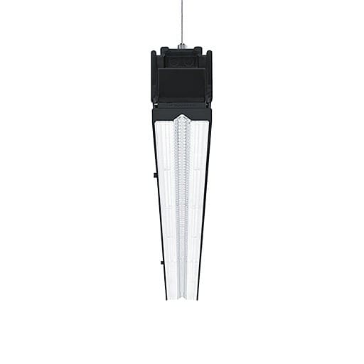 Réglette à LED pour chemin lumineux TECTON linéaire et efficace en énergie avec 64 LED par segment, de puissance moyenne et hautement performantes. Puissance du luminaire: 59,9 W, Luminaire pilotable via DALI avec convertisseur à LED, pour une durabilité écologique et une exploitation économique. Durée de vie des LED 100000 h jusqu'à une diminution du flux lumineux à 95 % de la valeur initiale. Tolérance de la couleur (MacAdam intial): 2. Efficacité lumineuse du luminaire: 154 lm/W. Flux lumineux du luminaire: 9210 lm. Luminaire à répartition ultra-extensive (Very Wide Beam). Rendu des couleurs Ra > 80, température de couleur 4000 K. Concept de lentille de diffraction réduisant l'éblouissement perçu. Les lentilles superposées en PMMA (résistance aux chocs jusqu’à IK07) permettent d’atteindre une protection IP50 pour les LED et l’optique. Solution tout-en-un : les réglettes, les lampes et le réflecteur combinés en un seul produit permettent d’obtenir un chemin lumineux à LED 100% continu et sans interruption. Permet des distances plus importantes entre les lignes lumineuses tout en conservant une grande uniformité au niveau du résultat de l'éclairage. Aspect de grande qualité identique à celui du rail porteur. Niveau de gradation pour le régime DC préréglé sur 15 %. Luminaire à LED pour chemin lumineux en tôle d'acier, laqué, recouvert d’une laque polyester noir. Flexibilité à 100 %, installation mécanique et électrique sans outil sur le rail porteur TECTON, au moyen de la technique CLIX et grâce à deux verrous quart de tour rapportés latéralement sur le rail. Pas de rayonnement ultra-violet et infrarouge. Température ambiante : entre -20°C et +35°C. Luminaire à filerie exempte d'halogène et sans silicone. Note : en cas d'utilisation dans des atmosphères à forte sollicitation chimique, veuillez prendre contact avec votre conseiller. Dimensions : 1997 x 60 x 85 mm. Poids : 2,8 kg.