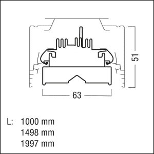 Réglette à LED pour chemin lumineux TRINOS efficace en énergie avec 64 LED par segment, de puissance moyenne et hautement performantes. En combinaison avec les trois composants d'étanchéité TRINOS correspondants (profilé d’étanchéité, cache et embouts d'étanchéité) : degré de protection IP65 pour l'ensemble du système de chemin lumineux. Puissance du luminaire: 36,1 W, Luminaire pilotable via DALI avec convertisseur à LED, pour une durabilité écologique et une exploitation économique. Durée de vie des LED 100000 h jusqu'à une diminution du flux lumineux à 95 % de la valeur initiale. Tolérance de la couleur (MacAdam intial): 3. Efficacité lumineuse du luminaire: 153 lm/W. Flux lumineux du luminaire: 5540 lm (cache d'étanchéité pris en compte). Luminaire à répartition ultra-extensive (Very Wide Beam). Rendu des couleurs Ra > 80, température de couleur 4000 K. Concept de lentille de diffraction réduisant l'éblouissement perçu. Niveau de gradation pour le régime DC préréglé sur 15 %. Luminaire à LED pour chemin lumineux en tôle d'acier, laqué recouvert d’une laque à la résine polyester de couleur blanc. Montage mécanique et électrique sans outils sur le rail porteur TRINOS. Réglage de phase sur le connecteur. Pas de rayonnement ultra-violet et infrarouge. Température ambiante : -20°C à +40°C Luminaire avec câble exempt d'halogène. Résistance IK aux chocs mécaniques pour l'ensemble du chemin lumineux : IK07. Note : contacter votre conseiller pour l'utilisation dans des environnements chimiques, à forte humidité ou condensation, ou soumis à de fortes fluctuations de température, ou pour des projets sans silicone.. Certifié par l’institut Fraunhofer aux classes de pureté BPF E et F (domaine CNC). Autorisé dans des environnements où l'on peut s'attendre à un dépôt de poussière conductrice sur le luminaire (EN 60598-2-24). Dimensions : 1499 x 63 x 51 mm. Poids : 2,1 kg.