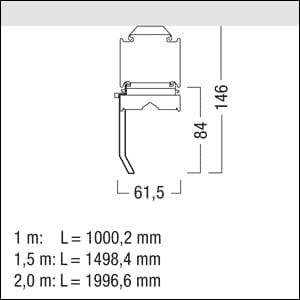 Réglette à LED pour chemin lumineux TECTON linéaire et efficace en énergie avec 64 LED par segment, de puissance moyenne et hautement performantes. Puissance du luminaire: 31,4 W, Luminaire pilotable via DALI avec convertisseur à LED, pour une durabilité écologique et une exploitation économique. Durée de vie des LED 100000 h jusqu'à une diminution du flux lumineux à 95 % de la valeur initiale. Tolérance de la couleur (MacAdam intial): 2. Efficacité lumineuse du luminaire: 155 lm/W. Flux lumineux du luminaire: 4870 lm. Luminaire avec répartition photométrique d'un lèche-mur. Rendu des couleurs Ra > 80, température de couleur 4000 K. Concept de lentille de diffraction réduisant l'éblouissement perçu. Les lentilles superposées en PMMA permettent d’atteindre une protection IP50 pour les LED et l’optique. Solution tout-en-un : les réglettes, les lampes et le réflecteur combinés en un seul produit permettent d’obtenir un chemin lumineux à LED 100% continu et sans interruption. Aspect de grande qualité identique à celui du rail porteur. Niveau de gradation pour le régime DC préréglé sur 15 %. Luminaire à LED pour chemin lumineux en tôle d'acier, laqué, recouvert d’une laque polyester argent. Flexibilité à 100 %, installation mécanique et électrique sans outil sur le rail porteur TECTON, au moyen de la technique CLIX et grâce à deux verrous quart de tour rapportés latéralement sur le rail. Pas de rayonnement ultra-violet et infrarouge. Le réflecteur en aluminium (fourni), thermopoudré argent est encliqueté sans outils sur le luminaire (montage possible des deux côtés). Les embouts de réflecteur doivent être commandés séparément. Température ambiante : entre -20°C et +35°C. Luminaire à filerie exempte d'halogène et sans silicone. Note : en cas d'utilisation dans des atmosphères à forte sollicitation chimique, veuillez prendre contact avec votre conseiller. Dimensions : 1000 x 62 x 146 mm. Poids : 1,8 kg.