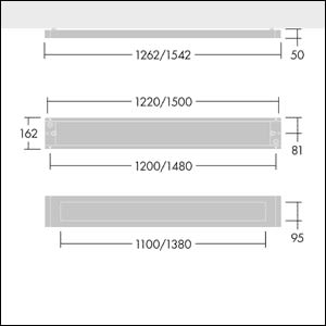 Luminaire de faible épaisseur, suspendu avec distribution directe/indirecte. gradable DALI Électronique,. Corps : tôle d'acier, thermopoudré blanc (similaire à RAL9016). Embouts : tôle d'acier thermopoudré blanc (similaire à RAL9016). Grille : brillant aluminium,. Classe électrique I, IP20, Résistance aux impacts : IK03. Connexion électrique via cordon d'alimentation pré-installé (2.5m). Optique : optique réduisant la luminance (LRO) avec UGR<19. Livré avec LED 3 000 K.. Connecteur de suspension en Y inclus – cordon de suspension avec rosace de plafond à commander séparément (22171581).Dimensions : 1542 x 162 x 50 mmPuissance du luminaire: 54,1 WFlux lumineux du luminaire: 6825 lmEfficacité lumineuse du luminaire: 126 lm/WPoids : 6,5 kg