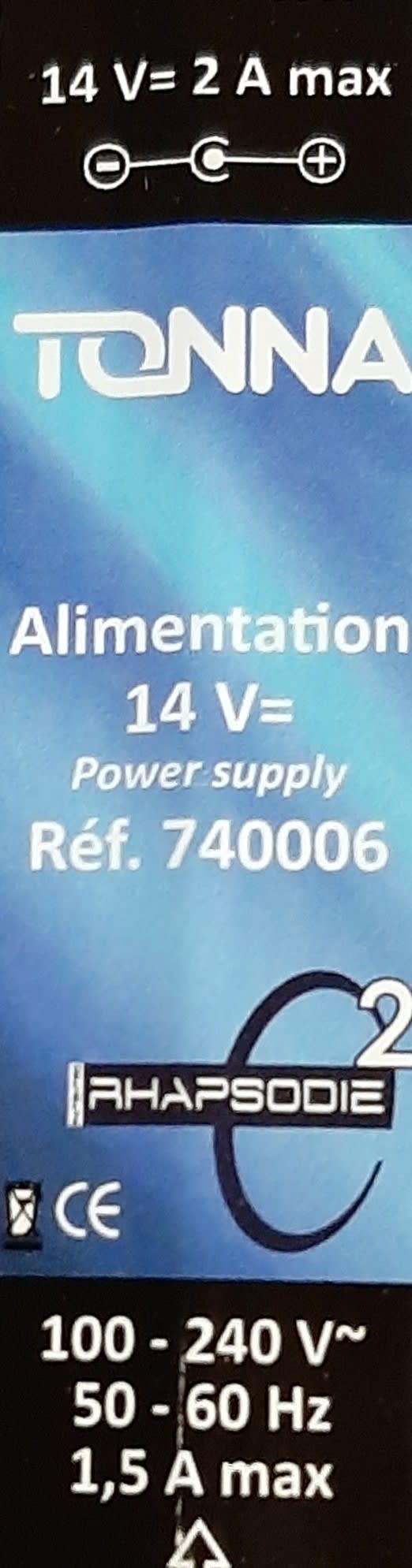 TONNA - ALIM. RHAPSODIE E2 14V 2A - 740006